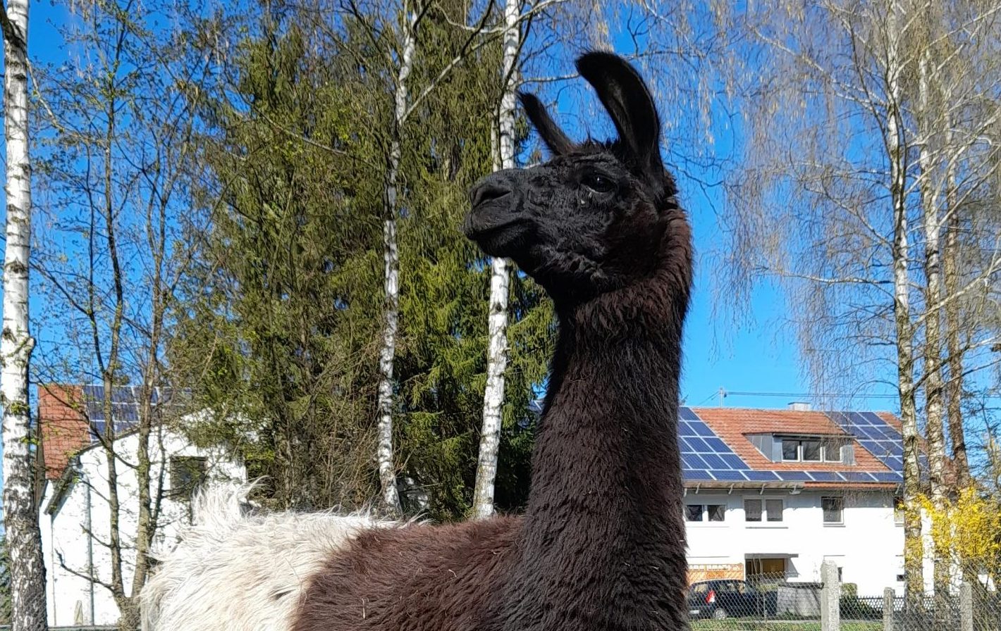 Unser einziger Lama Wallach ist ein ruhiger Hengst. Bei Wanderungen ein treuer Begleiter und muss immer aufmerksam die Gegend beobachten.
